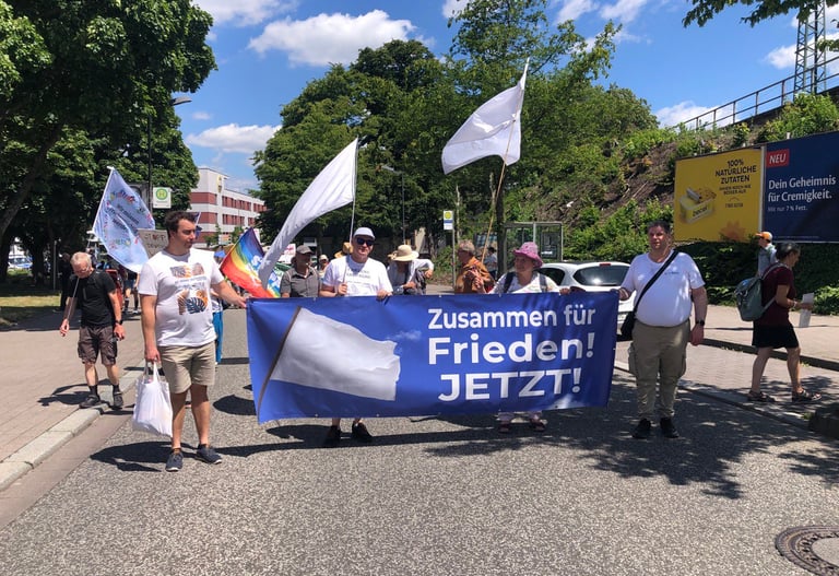 Unter dem Motto „Zusammen für Frieden! JETZT!“ und dem gemeinsamen Symbol der weißen Fahne wollen wir gemeinsam und kraftvoll unseren Wunsch nach (Welt)FRIEDEN sichtbar machen. Dabei wollen wir Meinungsverschiedenheiten überwinden und uns mit dem gemeinsamen Nenner des Friedens ohne Waffen verbinden.