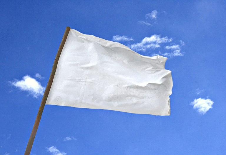Die weiße Fahne signalisiert im Völkerkriegsrecht die Bereitschaft zu Friedensgesprächen und steht für Waffenstillstand und Unverletzlichkeit. Wer sie trägt, bleibt vor Verletzung, Gefangennahme oder Tod geschützt. Die weiße Fahne ist kein Zeichen der Schwäche, sondern der Menschlichkeit. Sie steht völkerrechtlich und historisch für den Willen, Gewalt zu beenden,